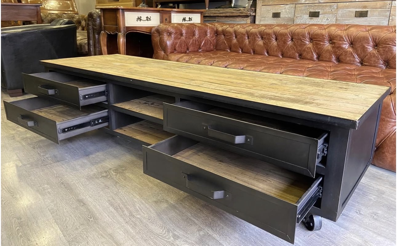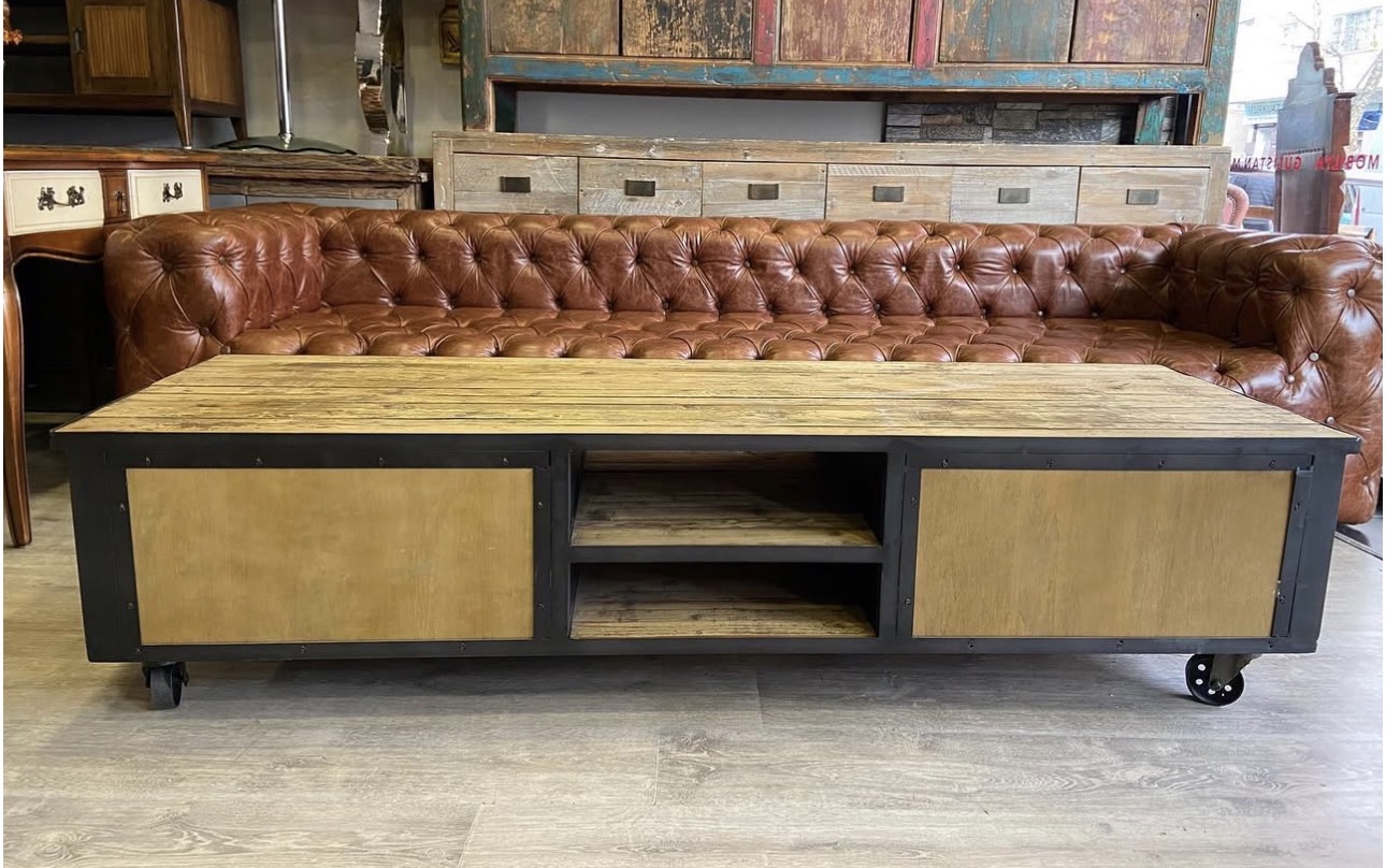 VINTAGE METAL VE AHŞAP TV DOLABI Ölçüleri;180/59/45